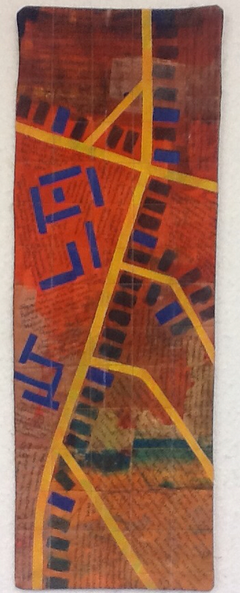 I am pleased to say that in making this quilt I have revived my fascination with apartheid era history. By coincidence just after it was finished the shelves in my studio were finally finished and I was able to unpack my collection of South African books which had been packed since we moved some eighteen months ago. n there I found a book I had forgotten all about detailing the history of the uprisings. I have also stumbled uppin a website detailing the routes the various students took from their schools on the 16th July. The two are inspiring me to start a whole series. This is the second one, again based on Vilakazi Street albeit rotated so that west is at the top.